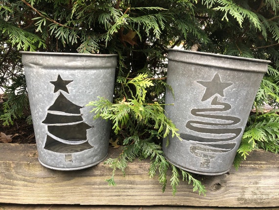 Christmas Tree Galvanized Sap Bucket Holiday Present Outdoor Etsy