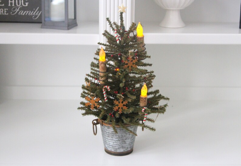 Tabletop Christmas Tree In Galvanized Bucket With Images Small