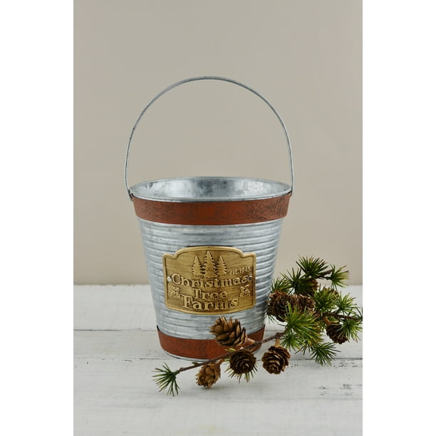 Galvanized 7 Inches Bucket With Handle Christmas Tree Farm Logo