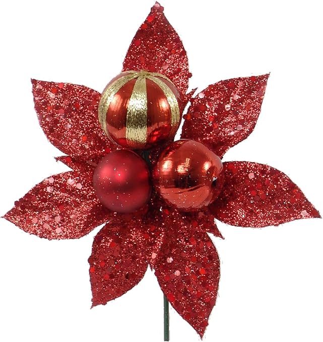 Amazon Com Larksilk Red Glitter Poinsettia Christmas Tree Picks