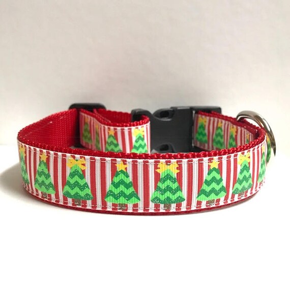 1 Christmas Trees Red Stripes Dog Collar Etsy