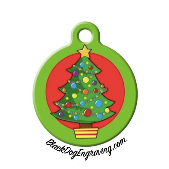 Christmas Tree Holiday Engraved Pet Id Tag Etsy