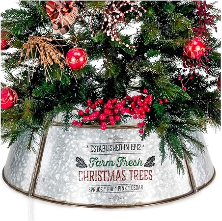 Rustic Decorative Christmas Tree Collar Galvanized Metal Tree Ring