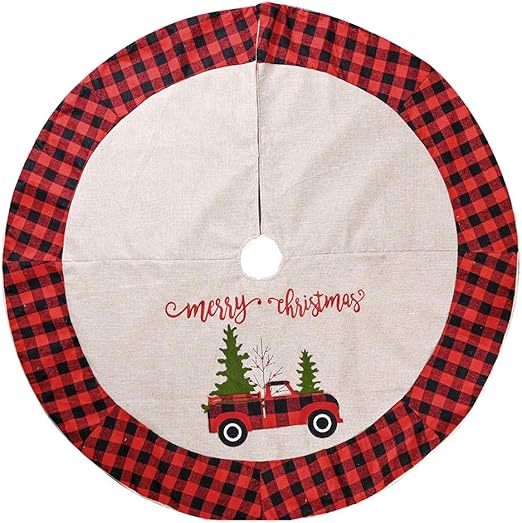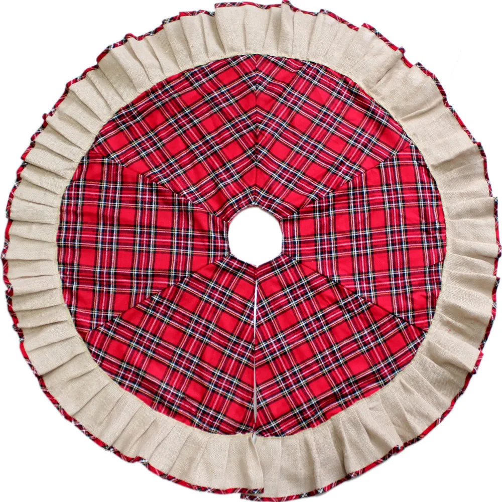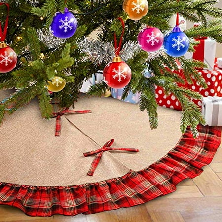 Luter 48 Inches Christmas Tree Skirt Red And Black Plaid Linen