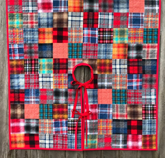 Quilted Patchwork Christmas Tree Skirt Plaid Cotton Flannel Etsy