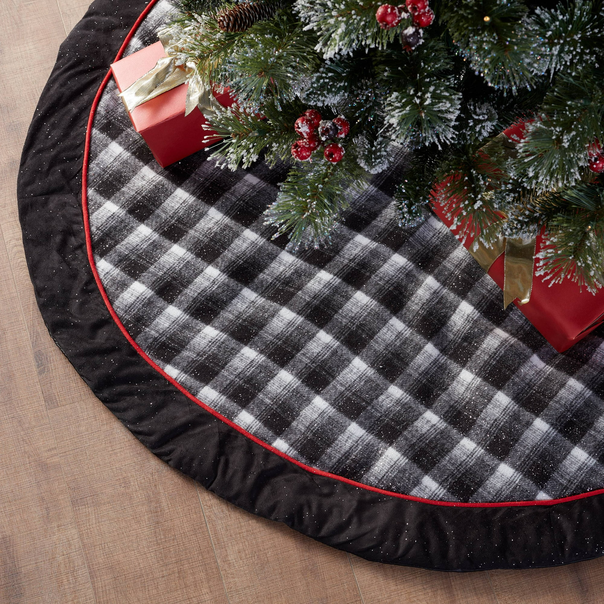 Holiday Time Black Plaid And Glitter Christmas Tree Skirt With