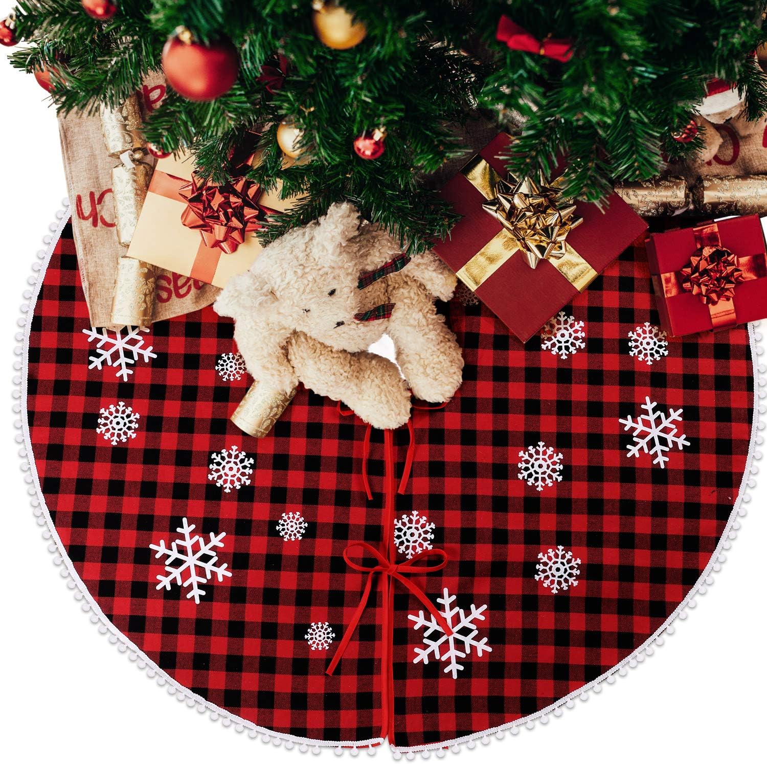Aiduy Christmas Tree Skirt 48 Inch Large Buffalo Plaid Christmas