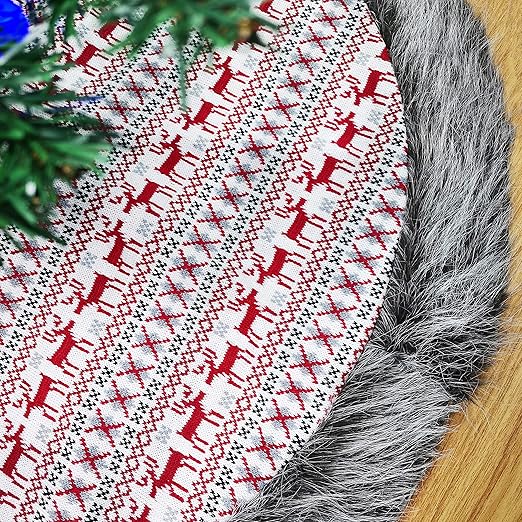 Christmas Tree Skirt Plaid With Faux Fur 47 Inches For Sale