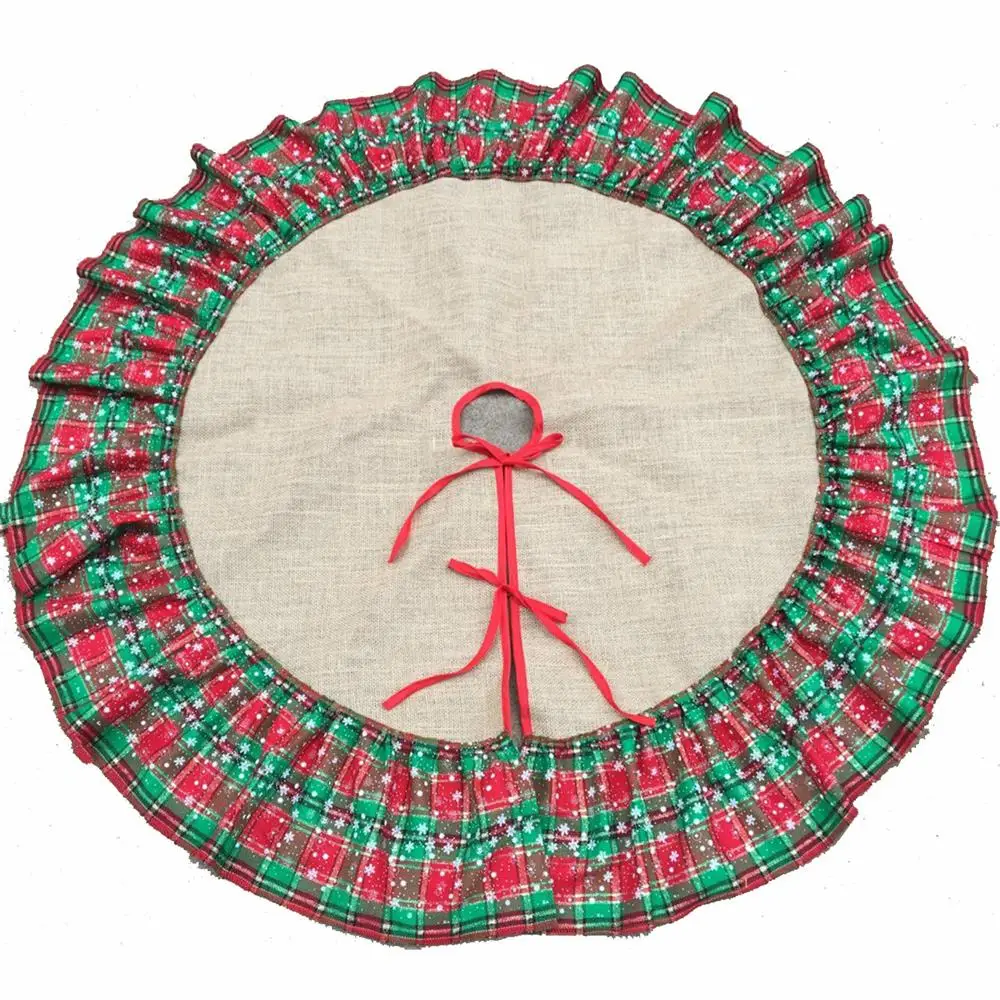 Excellent Linen Christmas Tree Skirt Plaid Ruffle Edge Border