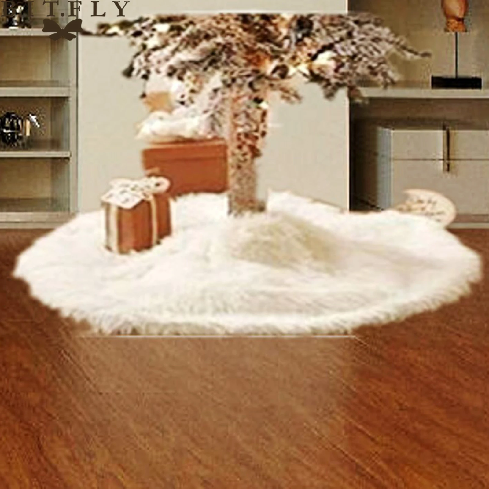 Bitfly Christmas Tree Skirt White Plush Fur Carpet Merry Christmas