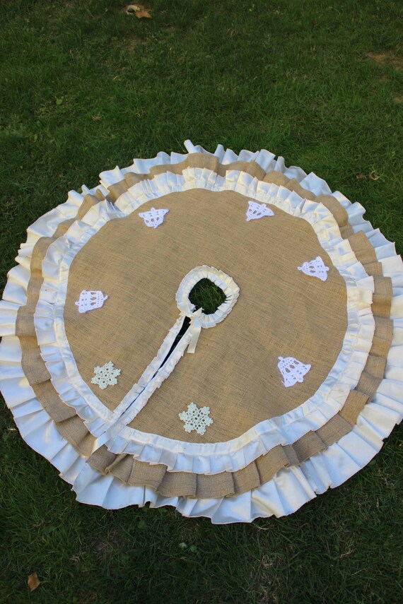 Jingle Bells Tree Skirt Burlap Tree Skirt White Tree Skirt Etsy