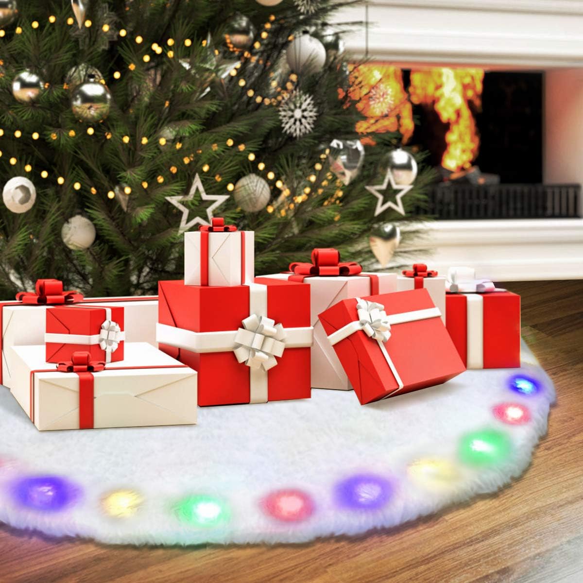 Gohope Christmas Tree Skirts White Tree Skirt Decorations Faux