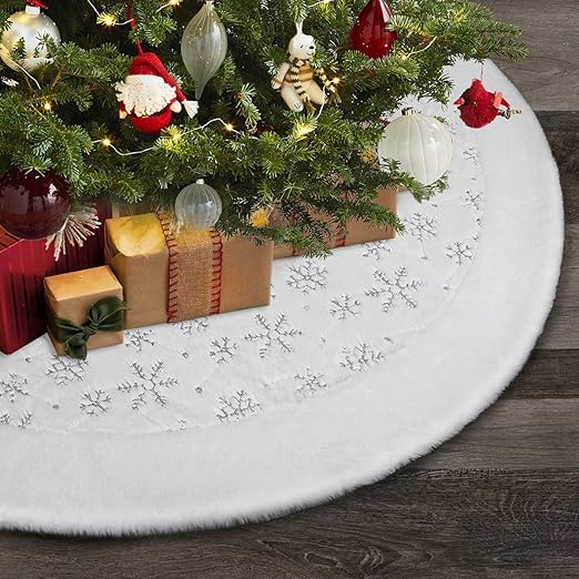 Amazon Com Yeahome Christmas Tree Skirt 48in White Soft Faux Fur