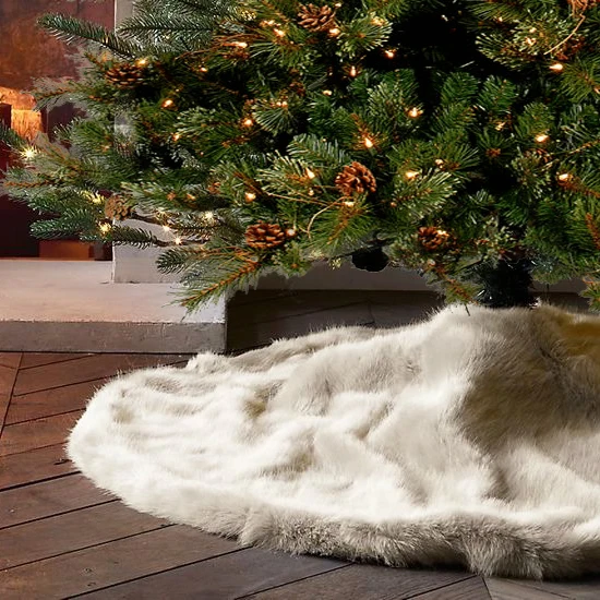 Luxury Christmas Tree Skirt Faux Fur Home Xmas Floor Decor
