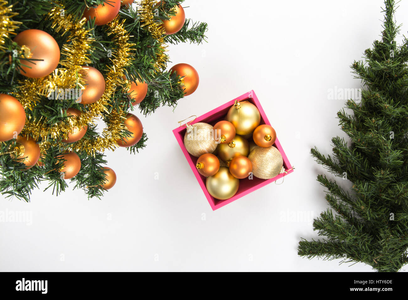 Christmas Tree With Golden Balls Tinsel Garland Box Of Ornaments