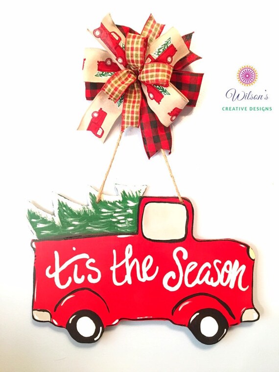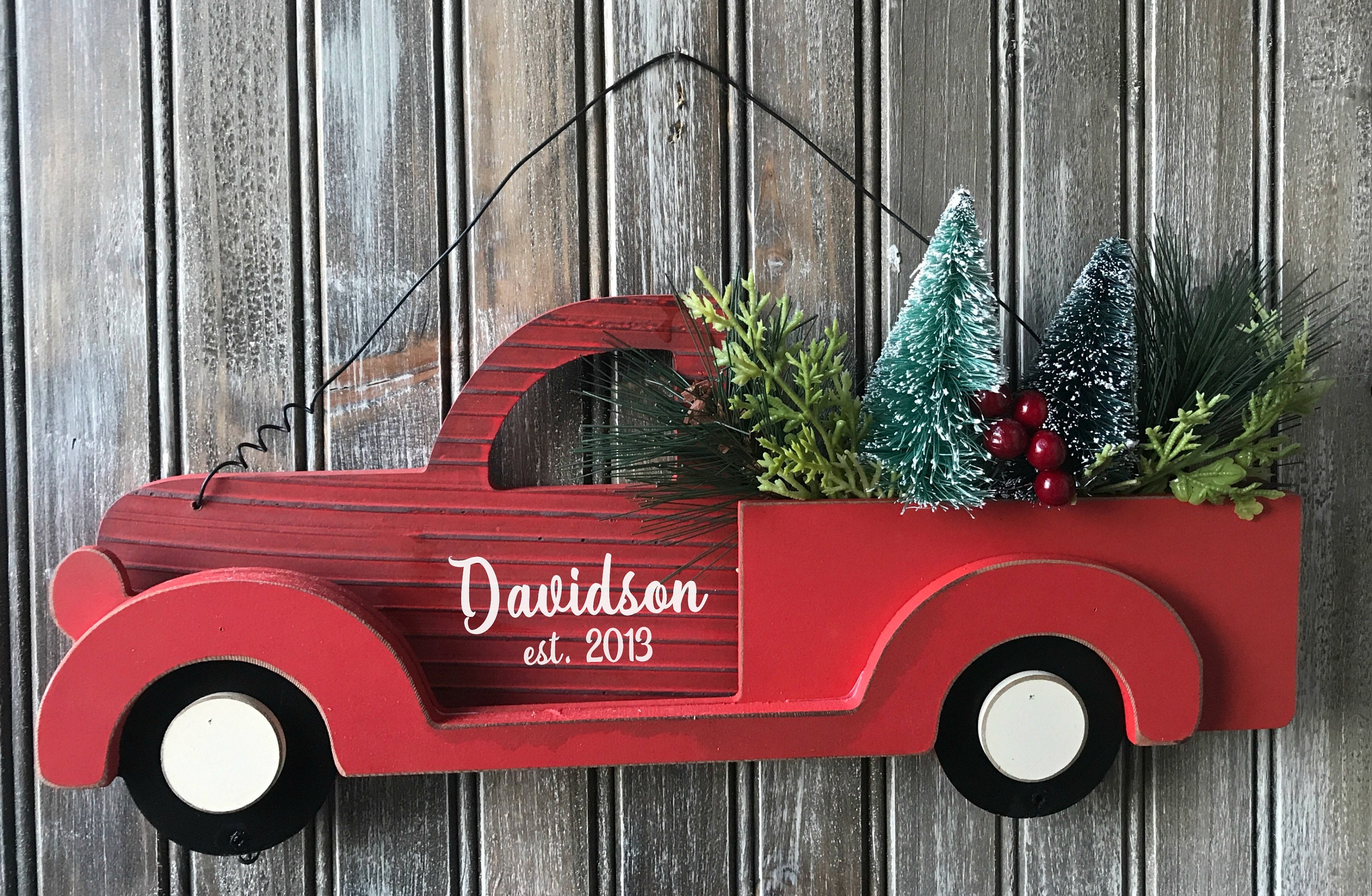 Red Christmas Truck Door Hanger Christmas Truck For Door Etsy
