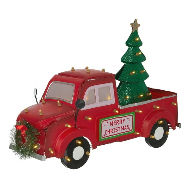 Holiday Time Christmas Decor 32 3d Metallic Truck With Tree