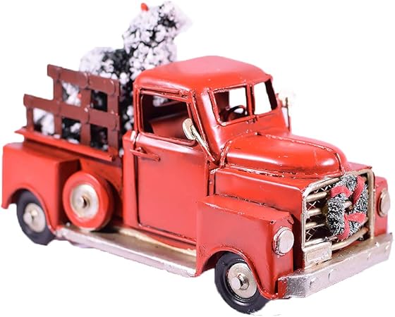Ourwarm Cute Little Metal Christmas Red Truck Vintage Red Truck
