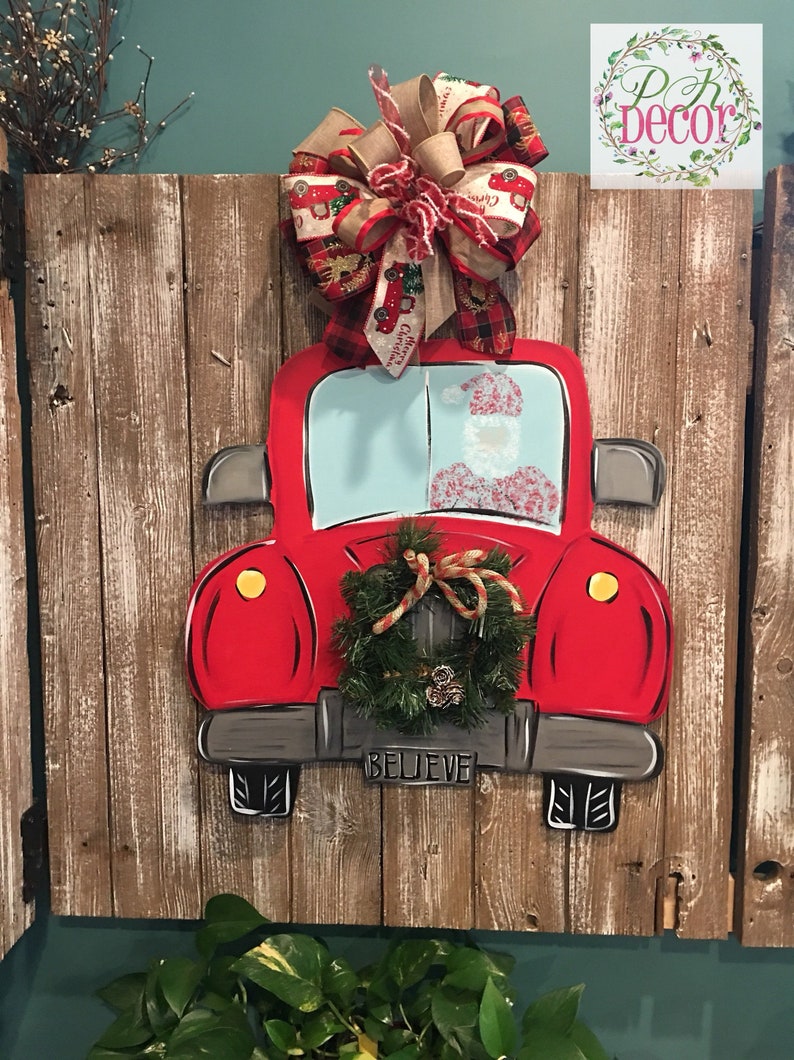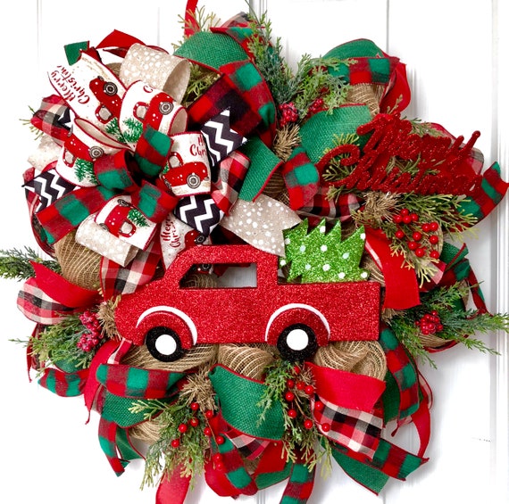 Christmas Wreath Red Truck Wreath Christmas Truck Holiday Etsy