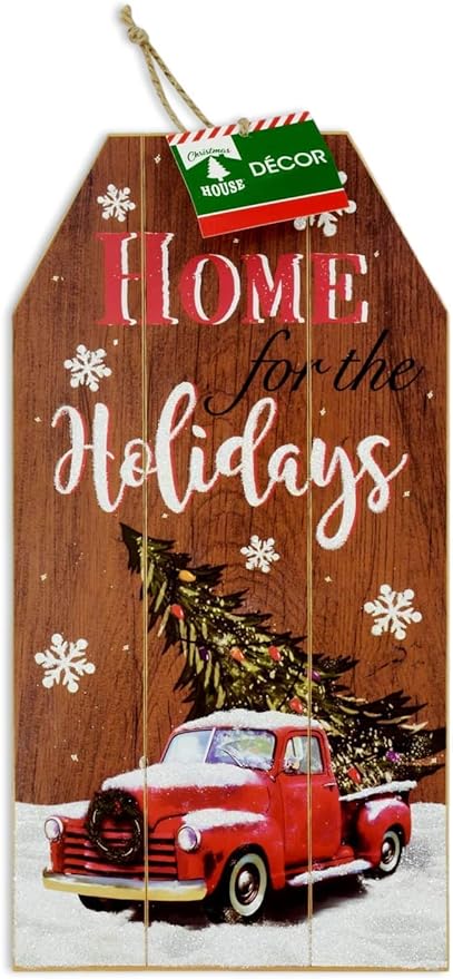 Vintage Classic Holiday Decor Wall Hanging Wooden Christmas Truck