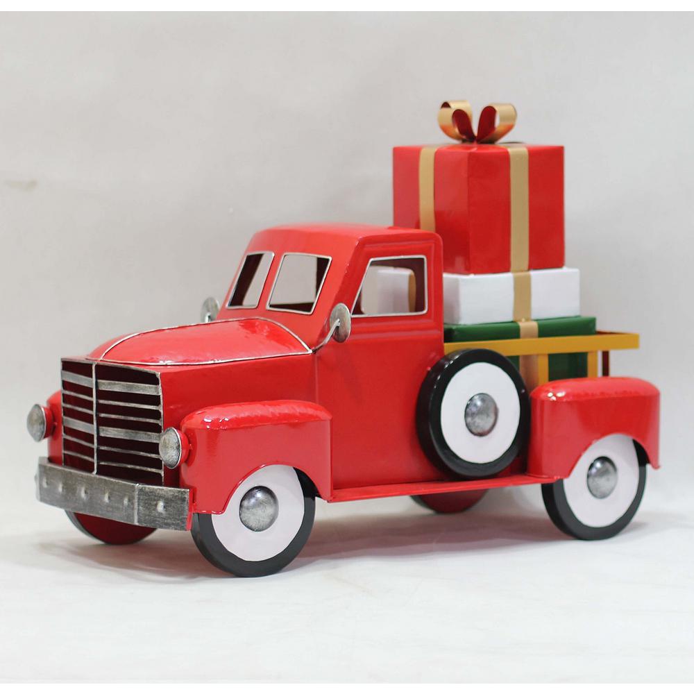Red Metal Truck Decor 10 Inch Diecast Truck Christmas Truck