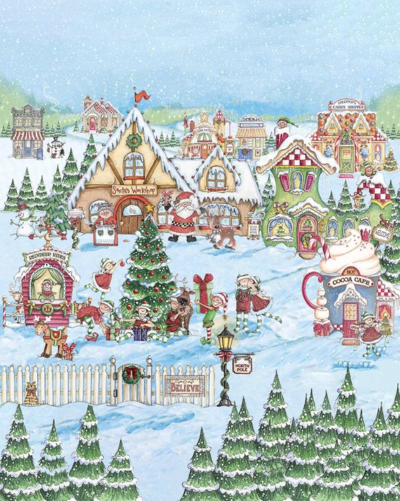 Christmas Village Art Print Christmas On Peppermint Lane Etsy