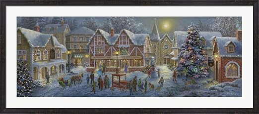 Amazon Com Christmas Village Panoramic By Nicky Boehme Framed Art Print Wall Picture Espresso Brown Frame 54 X 24 Inches Posters Prints