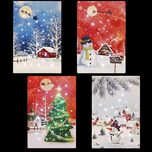 Christmas Canvas Wall Art Led Light Canvas Prints 4x8 Inch Wall Art Pictures Home Decor Desk Christmas Decorations 4pack