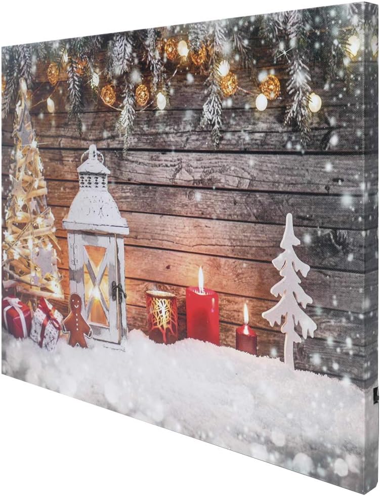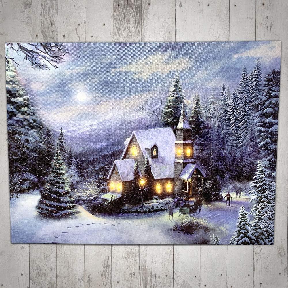 Large Christmas Canvas Led Wall Art Winter Painting 24x16 Inches Lighted Holiday Christmas Decorations Home Decor Prints Christmas Cottage Wantitall