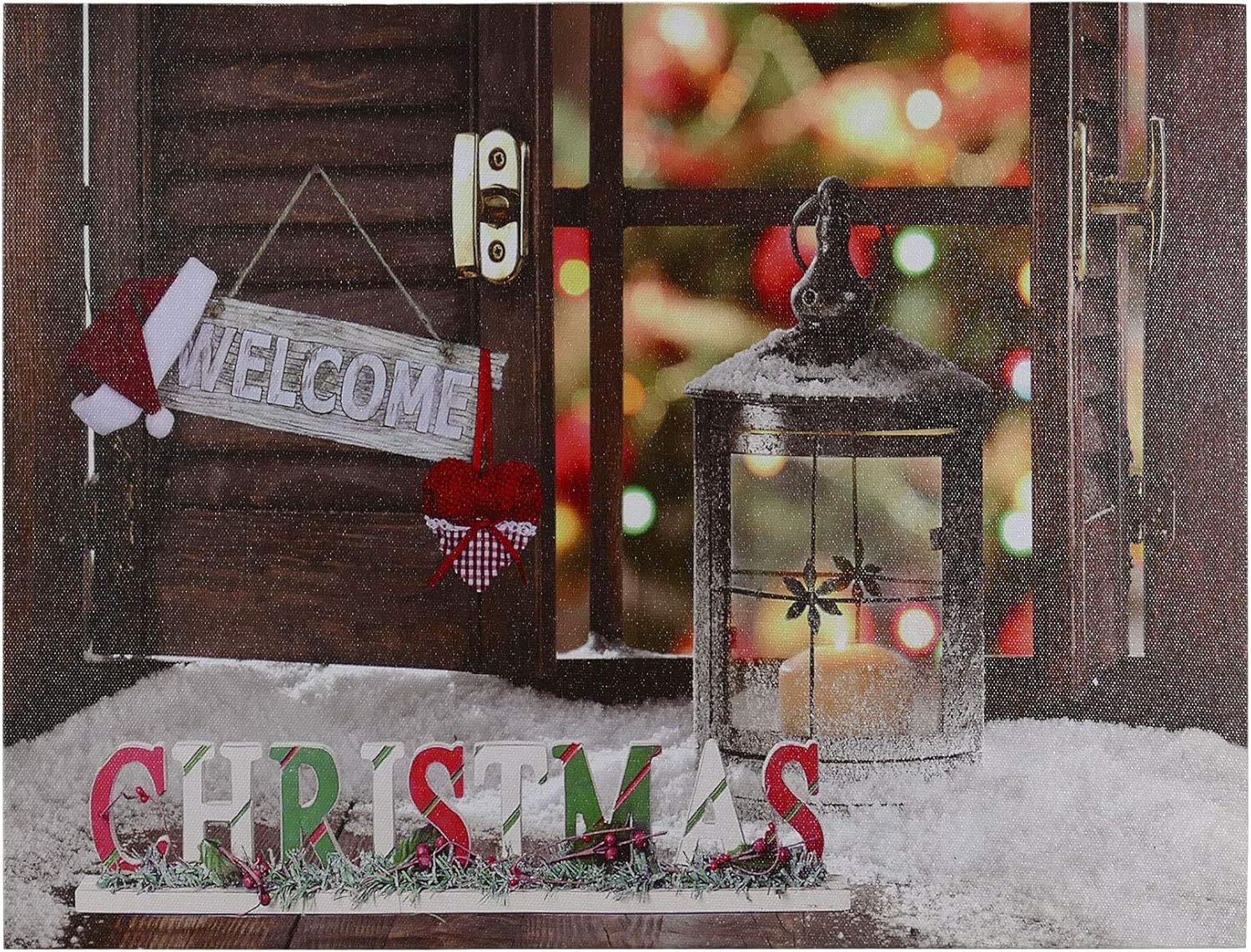 Amazon Com Nikky Home 16 X 12 Welcome Christmas Led Lighted Canvas Wall Art Prints With Window Snow Scene Picture For Holiday Decor Home Improvement