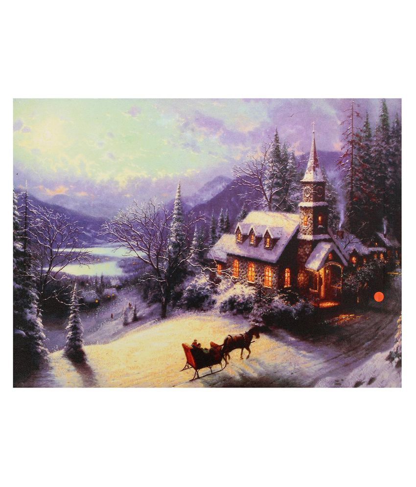 Wall Art Canvas With Flickering Led Light Festive Snowy Christmas Picture Decor Home Garden String Lights Fullpacking Com Ec
