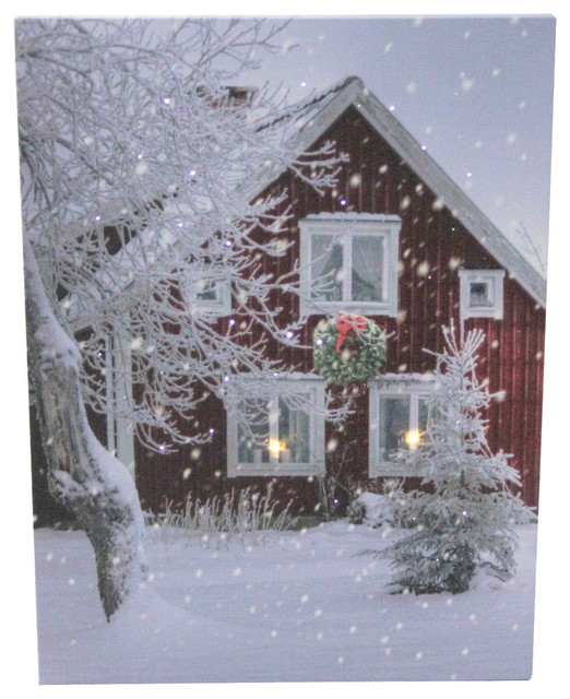 Led Fiber Optic Lighted Red Snowy Barn House Christmas Wall Art 15 75 X12 Farmhouse Prints And Posters By Northlight Seasonal