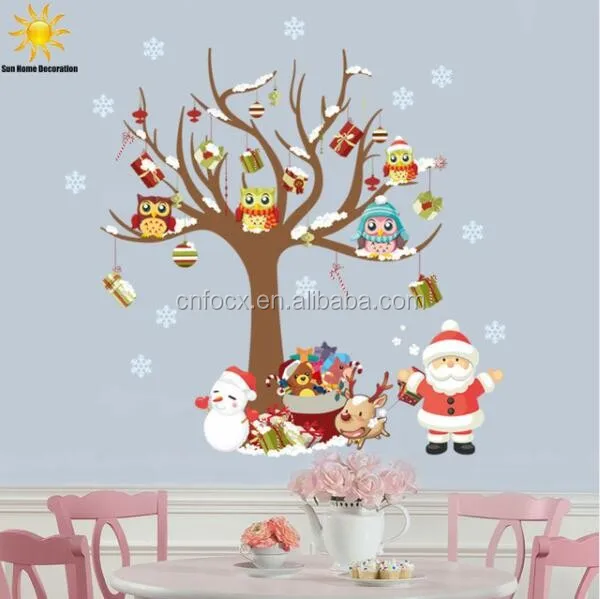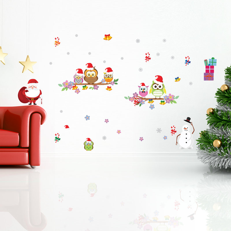 Santa Owl Anak Room Bedroom Stiker Dinding Natal Stiker Jendela