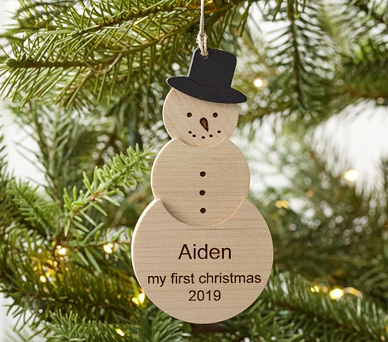 Personalized Wooden Snowman Christmas Ornament Pottery Barn Kids