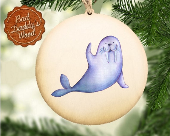 Manatee Ornament Holiday Christmas Wood Ornaments Funny Cute Etsy