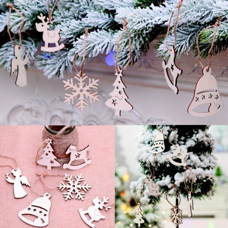 10pcs Wooden Cutouts Christmas Wood Ornaments Christmas Tree