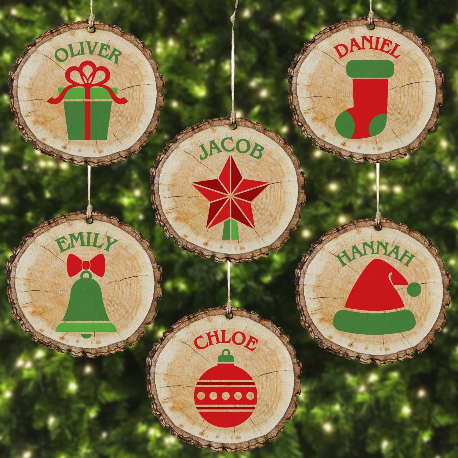 Personalized Rustic Christmas Wood Ornament Available In 6 Designs