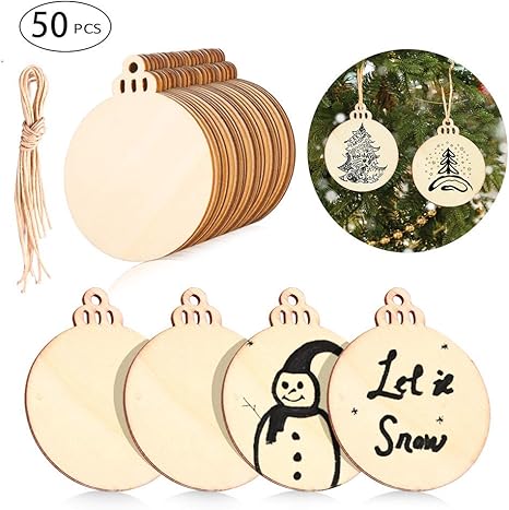 Ageomet 50pcs Christmas Wooden Ornaments Unfinished Wood Slices 10