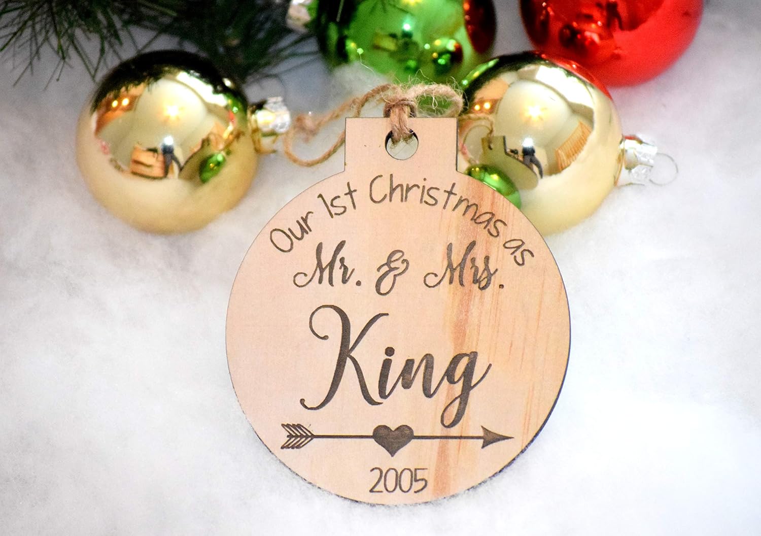Mr Mrs Personalized Christmas Wood Ornament Christmas Clearance