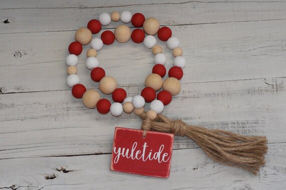 Red Farmhouse Beads Farmhouse Christmas Home Decor Beads Wood