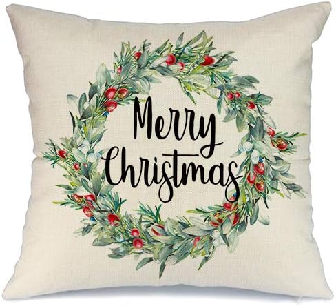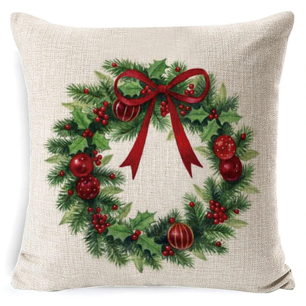 18 Christmas Wreath Pillow Case Cotton Linen Cushion Cover Home
