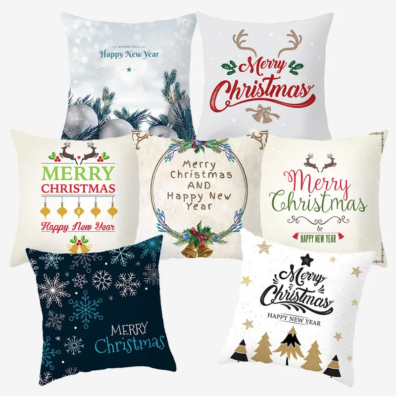 Christmas Wreath Snowflake Letter Pillow Case Home Decor Soft