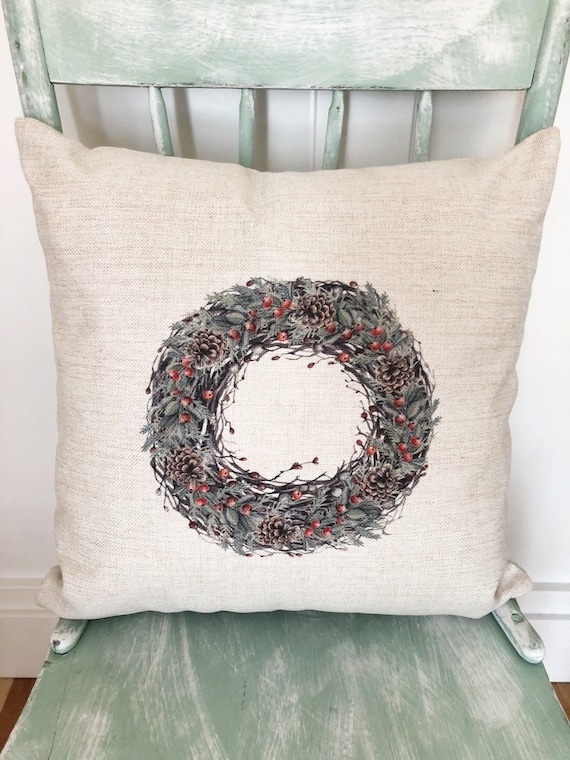 Christmas Berry Wreath Pillow Cover Christmas Wreath Decor Etsy
