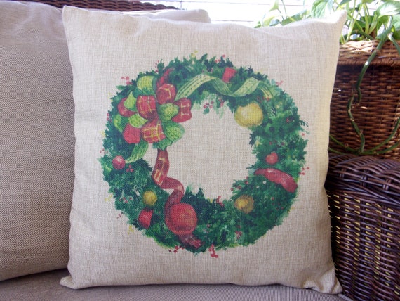 Wreath Christmas Pillow Cover Holiday Wreath Pillow Cover Etsy