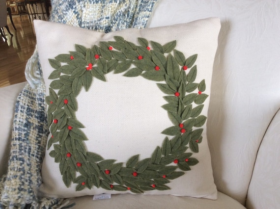 Christmas Wreath Pillow Cover Holiday 3d Felt Wreath Pillow Etsy