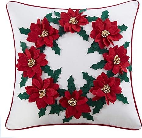Christmas Wreath Pillow Cover Holiday 3d Floral Cushion
