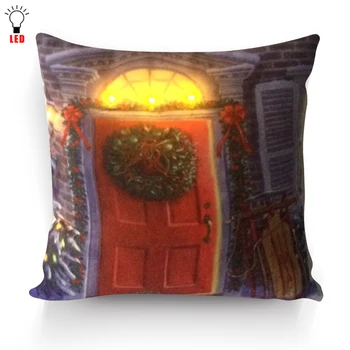 Digital Print Led Cushion Cover Of Christmas Wreath On Door For