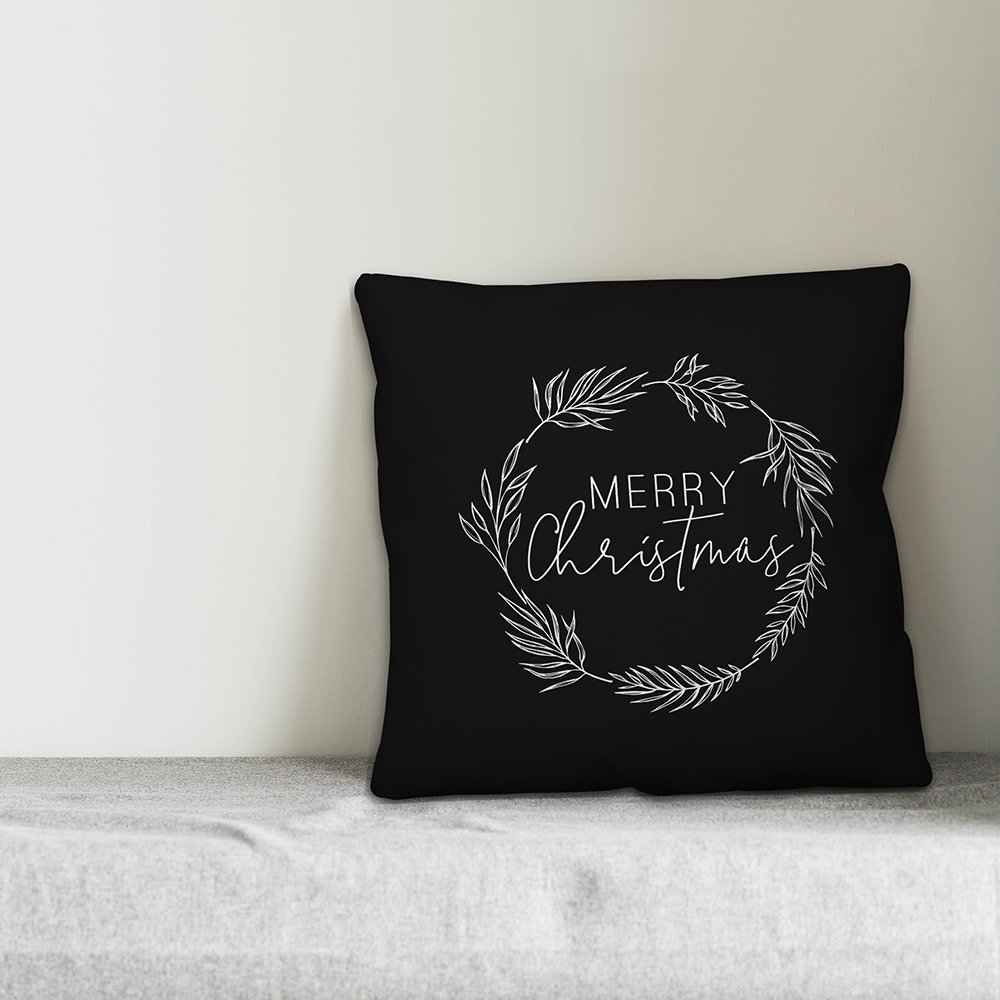 Merry Christmas Christmas Wreath Design Christmas Pillow
