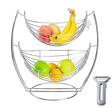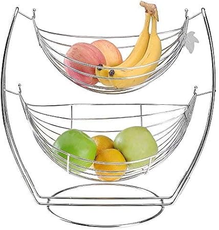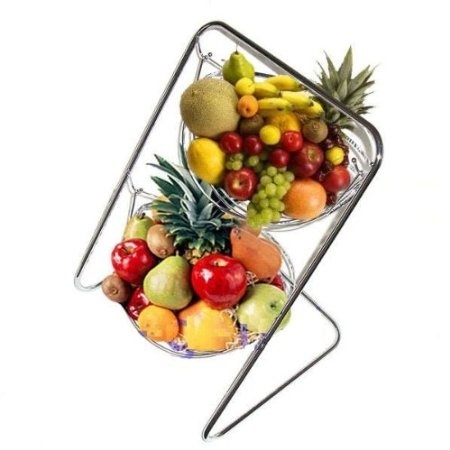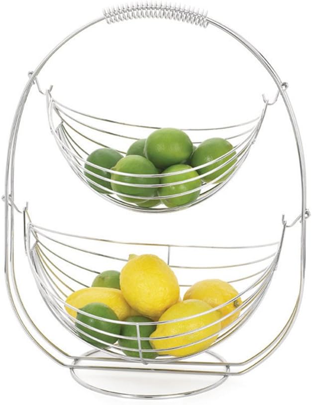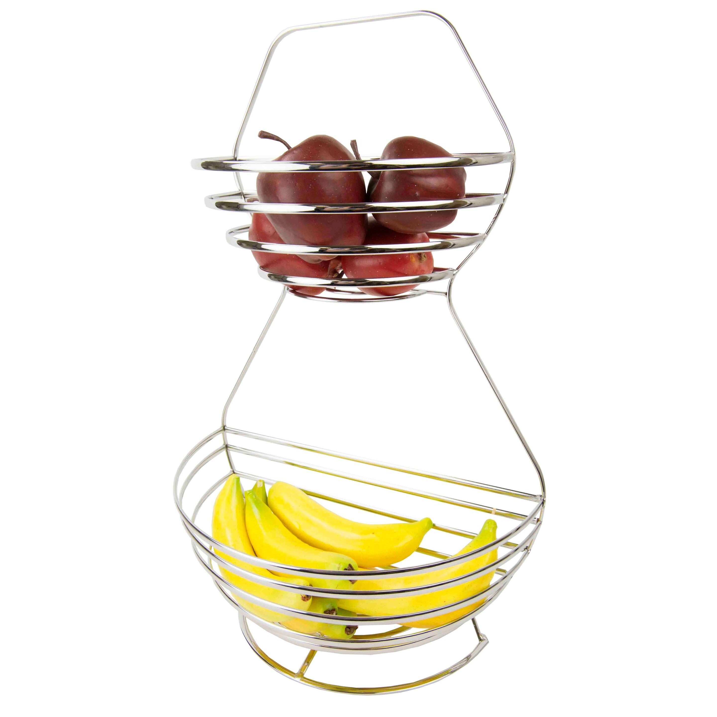 2 Tier Fruit Basket Large Capacity Fruit Bowls Chrome Swinging
