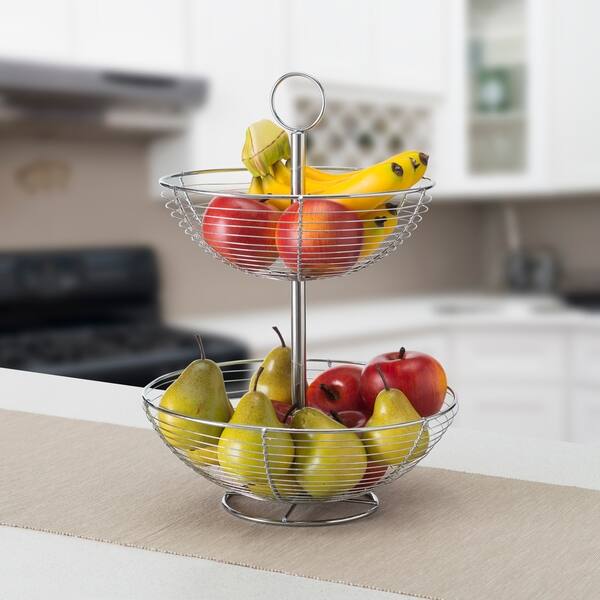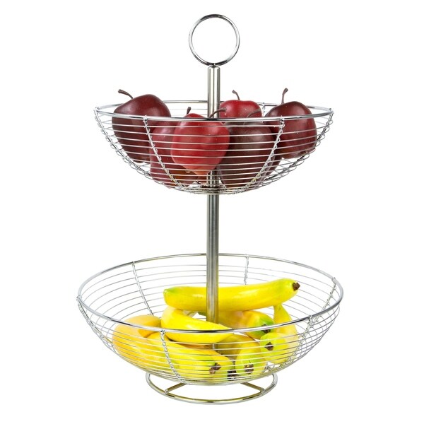 Shop Home Basics Wire Chrome 2 Tier Fruit Basket Overstock
